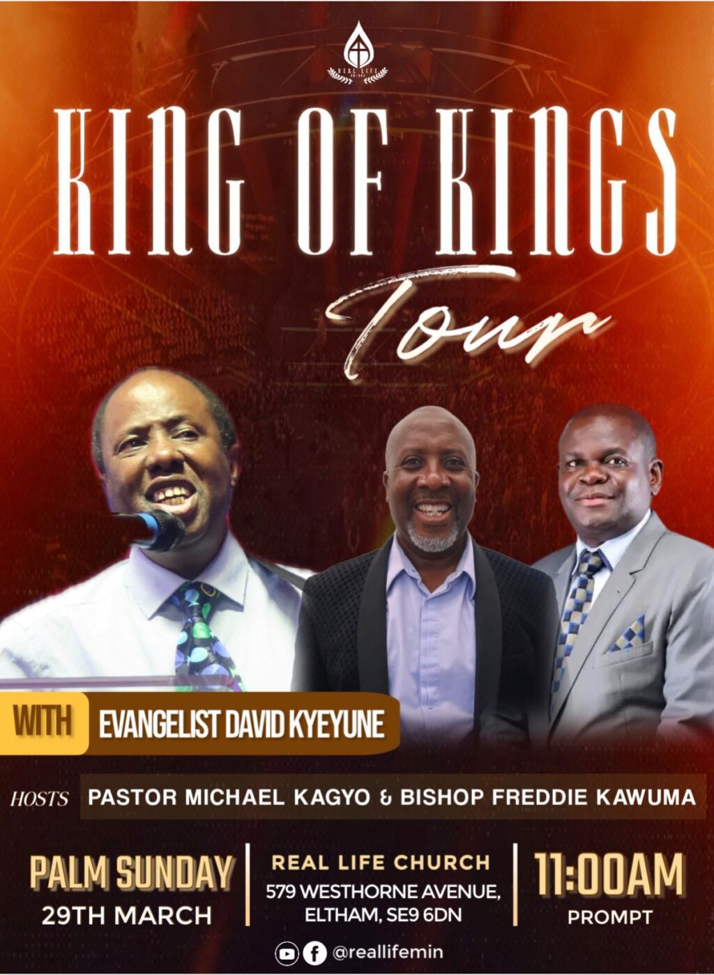 SPEAKER / MINISTER: Evangelist David Kyeyune DATES: 5th April 2026 TIME: EASTER SUNDAY 11.00 AM ONLINE STREAM: Youtube Live | Facebook Live FREE EVENT FOR ALL. ONSITE VENUE: Real Life Church, 579 Westhorne Avenue, Eltham, London, SE9 6DN (Directions here) OTHER LINKS Facebook: www.facebook.com/godrevolution Youtube: www.youtube.com/godrevolution X (formerly called Twitter): www.twitter.com/godrev Instagram: www.instagram.com/godrevolution/…